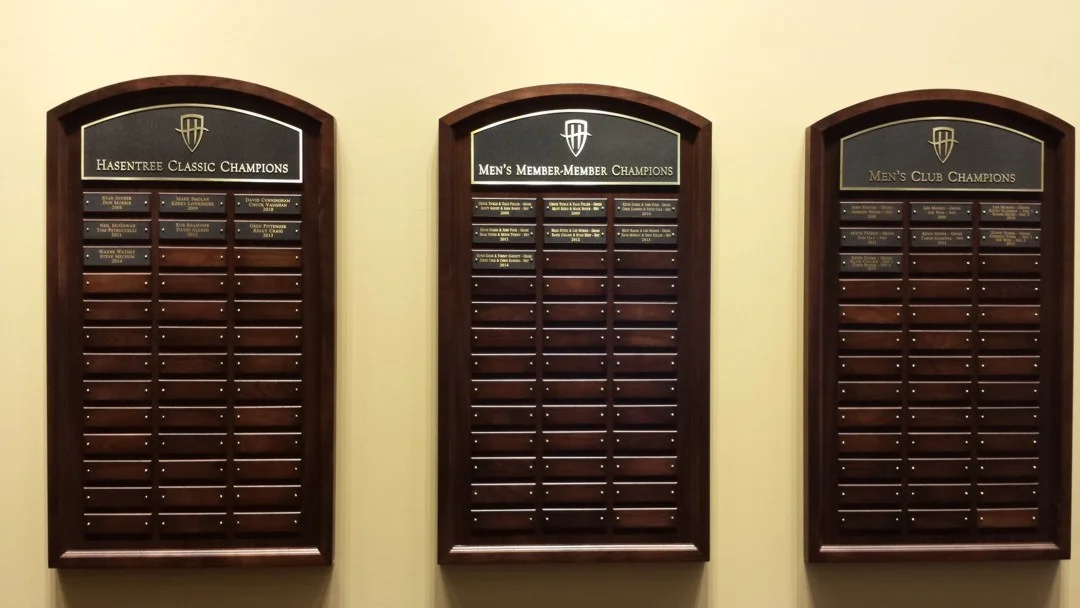 Teemark specializes in custom design and manufacture of Perpetual Plaques and Trophy Boards. Teemark will work with each event's history, your clubhouse decor and wall space, and your budget to create perpetual plaques & tournament boards that are perfect for your unique events & traditions.
