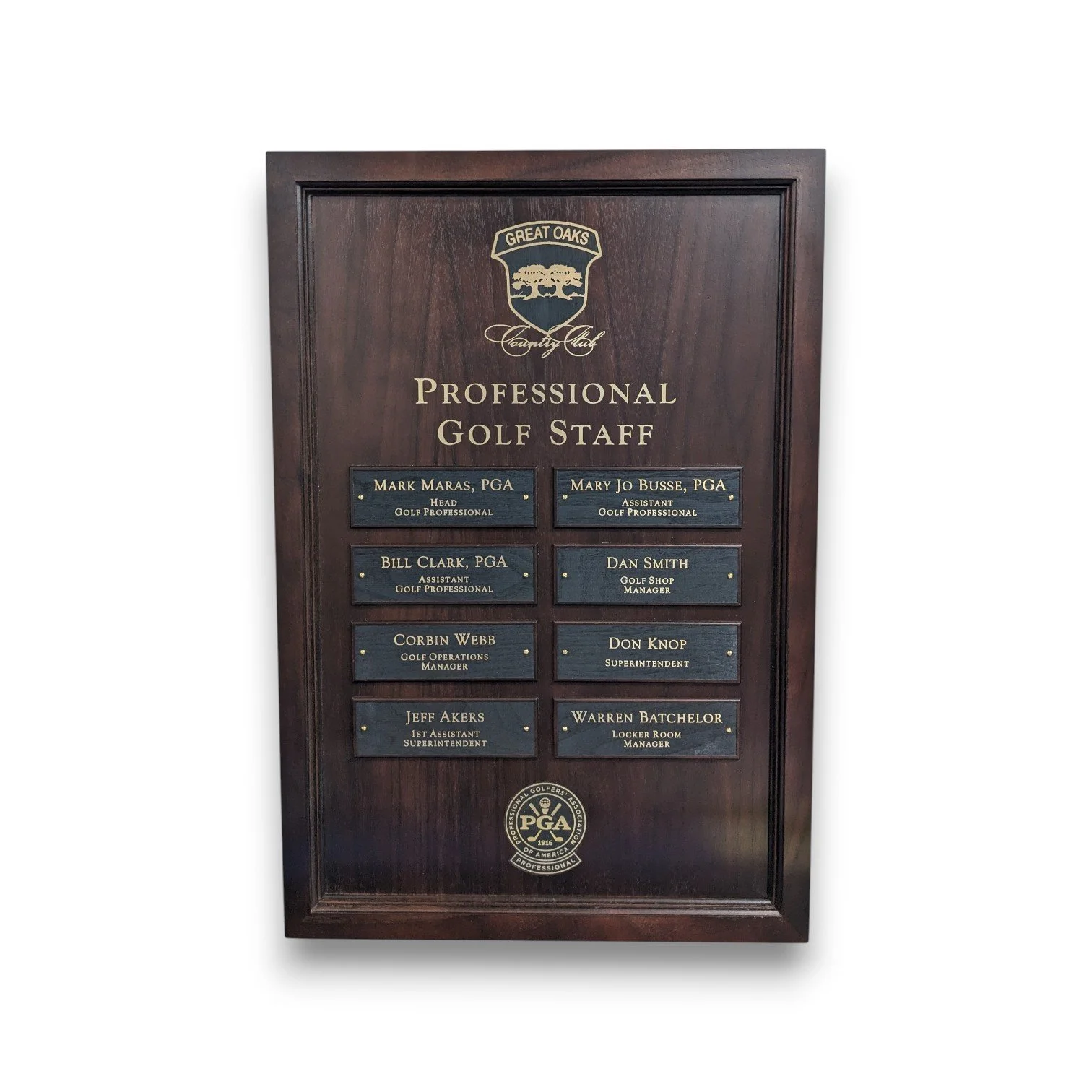 Teemark PGA Staff, Board of Directors, and Key Personnel plaques are designed to best accommodate your specific needs.